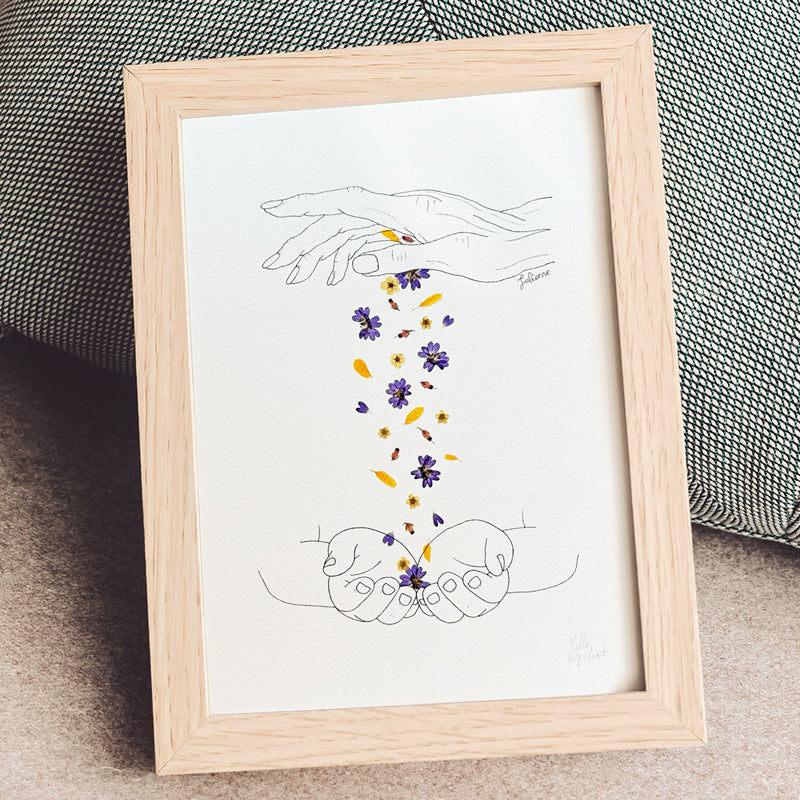 Grâce à ma double expertise d'illustratrice et d'artisane en fleurs pressées, je donne vie à vos rêves les plus créatifs.
