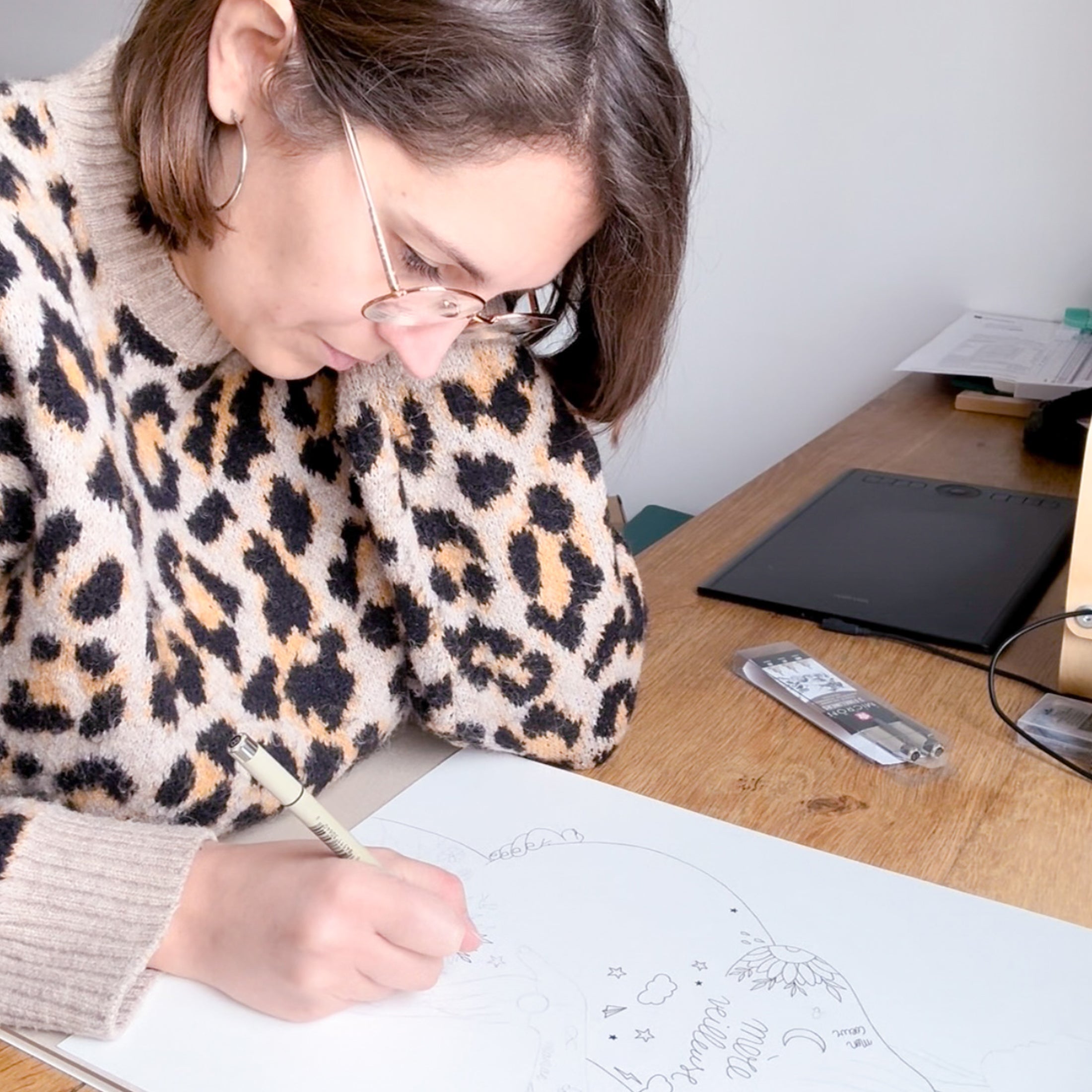 Mes techniques principales sont l'illustration à l'encre + fleurs pressées. Pour des demandes très spécifiques (dorure, aquarelle, techniques mixtes complexes...), nous en discutons au cas par cas. Tout est possible.